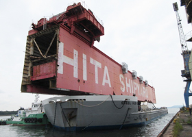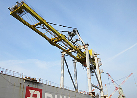 主に造船所で使用され、船のブロックを搭載するクレーンです。