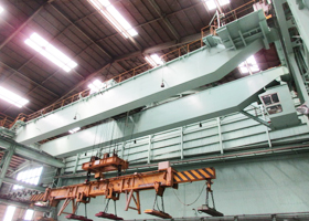 天井走行起重機ともいい、建築物の天井のスパンを利用して据付けられているクレーン。クレーン産業界に広く普及している。